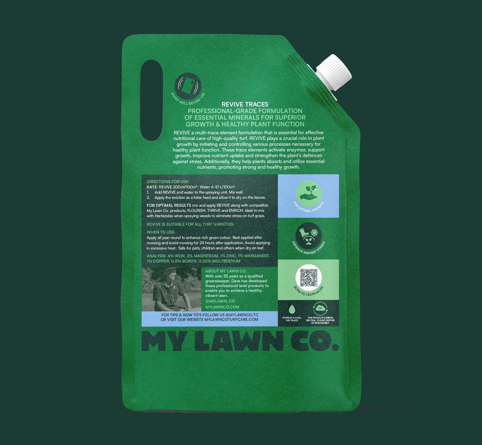 FOR OPTIMAL RESULTS: Mix and apply REVIVE along with compatible My Lawn Co. products: FLOURISH, THRIVE and ENRICH.